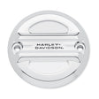 Shaped to cheat the wind. The polished and mirror-chromed Airflow Collection features a raised bridge with 3 laminar grooves that float over the recessed panels. The layered surfaces capture light and shadows, and frame the subtle black-filled Harley-Davidson signature.