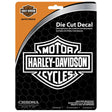 This 4 x 5.1-inch Harley-Davidson® Bar & Shield Die Cut Decal is crafted from weather-resistant vinyl, ensuring durability in various conditions. Designed to adhere securely to most smooth surfaces such as glass, plastic, and metal, it provides a crisp white emblem that showcases your passion for Harley-Davidson with lasting clarity and style. Perfect for adding a professional and authentic touch to your motorcycle or gear.