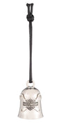 Crafted from premium brass with a polished silver finish, this Harley-Davidson Wrench B&S Ride Bell combines authentic styling with functional design. Featuring the iconic Bar & Shield logo, it's engineered to withstand the rigours of the road while adding distinctive character to your machine. The included rope attachment makes installation straightforward on any motorcycle. Beyond its aesthetic appeal, this guardian bell draws on time-honoured riding tradition—a protective talisman believed to trap malevolent road spirits and neutralise their influence on your journey. Riders have long sworn by these bells as essential safety companions, with folklore suggesting their protective power intensifies when gifted by someone close to you.