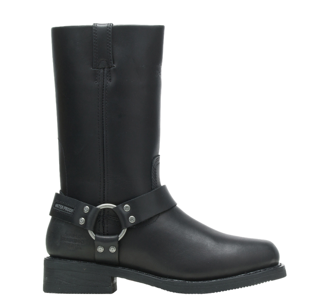 Harley-Davidson Men's Hustin Waterproof Boots deliver rugged protection for serious riders. Engineered with waterproof construction, these boots keep your feet dry through unpredictable weather while maintaining the classic aesthetic that defines the brand. The durable black leather upper resists wear and develops character over time, while the supportive sole provides stability during long rides. Built for both on-bike performance and off-bike versatility, the Hustin boots combine functional design with timeless style that complements any rider's gear collection.
