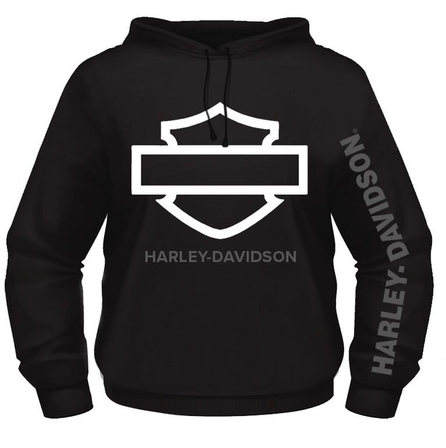 Designed in a classic fit, this hoodie offers a relaxed silhouette that's ideal for everyday wear or layering over your favorite riding gear. The standout feature is the bold white outline of the Bar & Shield logo prominently displayed on the front, celebrating the rich heritage of Harley-Davidson.