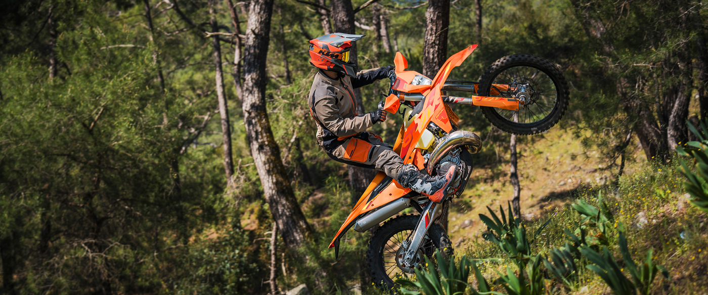 The 2025 KTM 250 EXC presents enduro riders with the ultimate combination of power and rideability, setting the benchmark in the highly contested E1 class. Thanks to its groundbreaking frame, closed-cartridge suspension, and epic TBI technology, it remains an extreme machine that continues to reach new heights. How far you push, though, is up to you.