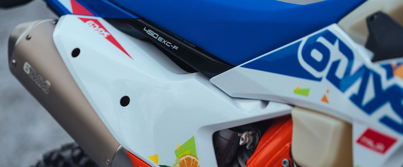 The KTM 450 EXC-F 6DAYS needs little introduction in enduro circles. Big power, unmatched agility, and truckloads of torque put this extreme READY TO RACE enduro weapon at the sharp end of any offroad battle. For 2026, it retains its championship-winning pedigree with a lightweight frame, closed-cartridge suspension, and a weapons chest of smart electronics to the paddock.
