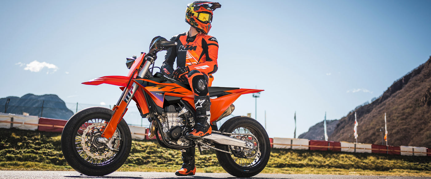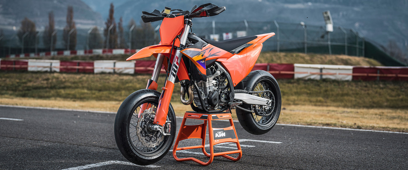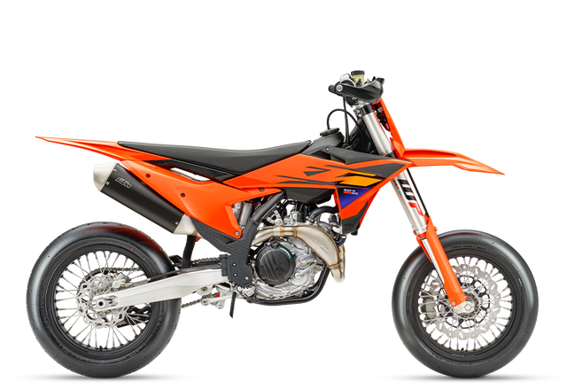 The KTM 450 SMR represents the only real all-aspect form of motorcycle sport. Taking all the best bits from the championship-winning KTM 450 SX-F and adding more asphalt bias like racing slicks, big brakes, and top-notch suspension. Simply put, it's READY TO RACE in the very purest form.