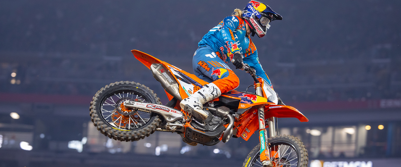 At the heart of the 450 SX-F Factory Edition is a compact, high-revving 449.9 cc SOHC liquid-cooled four-stroke single that’s engineered for explosive acceleration, strong throttle response and a massive broad powerband — keeping you ahead of the competition from the first jump to the checkers. This same engine architecture delivers class-leading rideability and peak power that’s capable of dominating both amateur and pro-level motocross tracks.