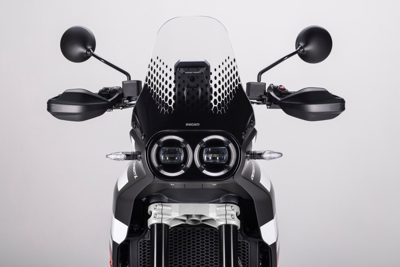 Built to withstand the rigors of off-road exploration, the DesertX features a powerful 937cc Testastretta 11° engine, delivering exhilarating performance and torque for every ride. Its lightweight chassis and agile handling make it equally adept at navigating rocky trails and cruising through city traffic.