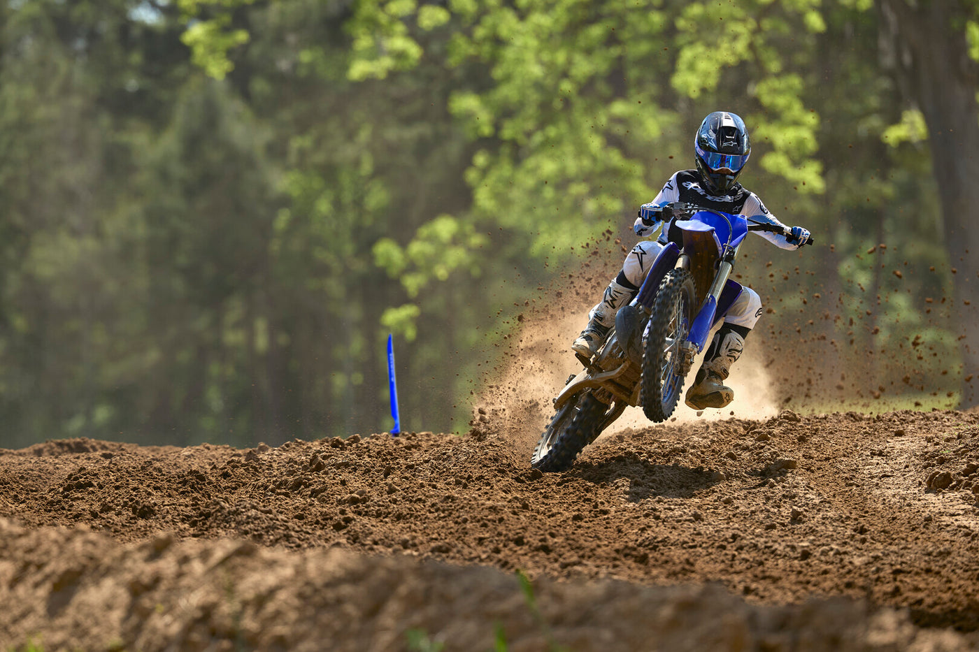 Braking and wheels are pure motocross spec: 270 mm front disc, 240 mm rear disc, 21-inch front wheel and 19-inch rear for optimal control and traction. Whether you’re ripping laps, training or chasing that holeshot, the YZ250 brings lightweight feel, razor handling and two-stroke aggression to the track.
