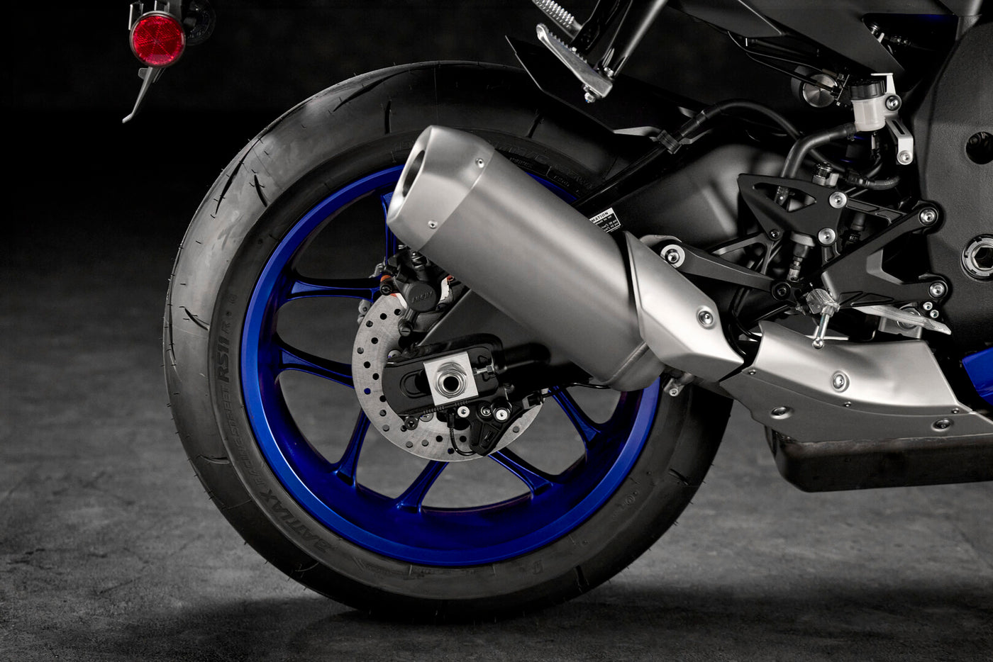 But power alone doesn’t define the R1—it’s also about the chassis, electronics and aerodynamics working in harmony. The aluminium Deltabox-style frame and fully adjustable 43mm KYB inverted fork paired with a KYB monoshock deliver track-ready precision on public roads and closed circuits alike. Dual 320mm front discs, Brembo Stylema calipers (on many markets) and ABS with Brake Control System make sure stopping is as assured as going.