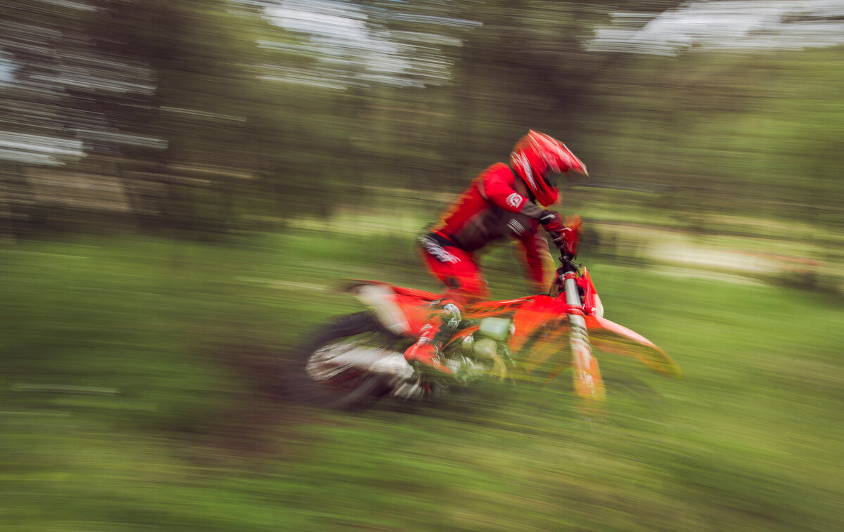 But it's not just about performance – the EC 450F also boasts all-new bodywork that is as stylish as it is ergonomic. Redesigned from front to back, the sleek bodywork features larger contact surfaces and an improved rider triangle, enhancing control and comfort for riders of all sizes. The rad shrouds are shaped to provide better grip, while the super grippy seat cover keeps you firmly planted in the saddle, ensuring maximum confidence and control.