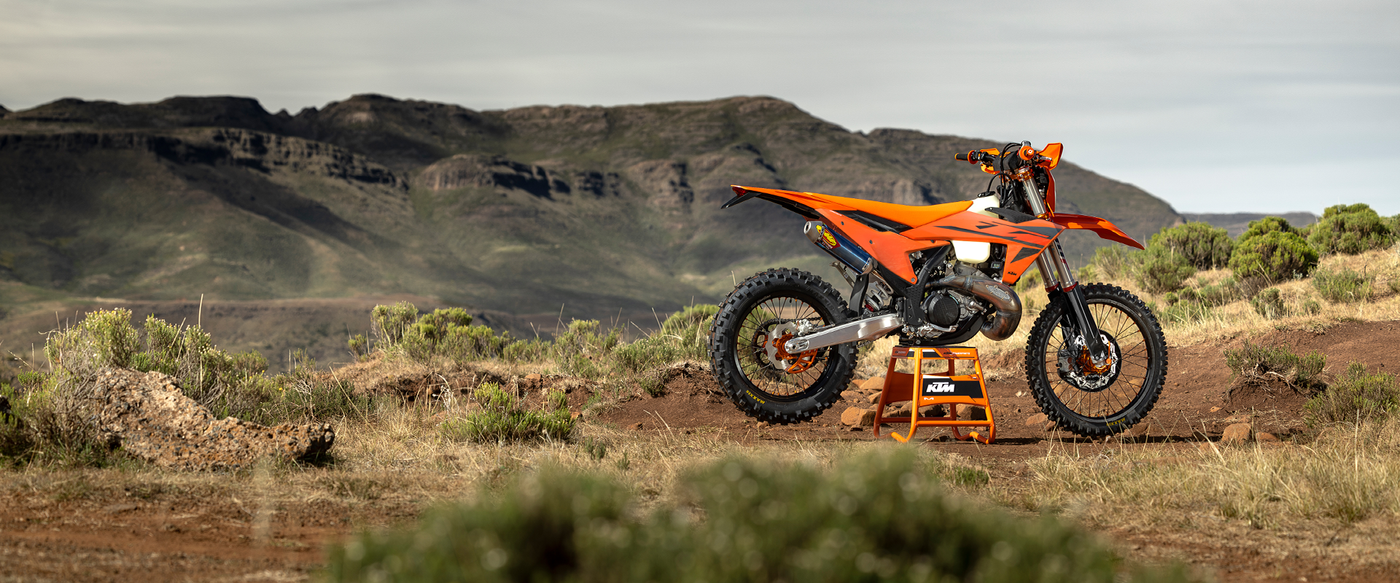 The KTM 300 EXC maintains legendary status as the undisputed King of enduro. Not only does it have the most recognised title at the sharp end of hard enduro, it's still unmatched when it comes to 2-stroke ingenuity, fury, and downright fun. With a bulletproof, fuel-injected 2-stroke engine churning out masses of low-down torque and top-end fury, it's the ideal companion when tackling challenging terrain.