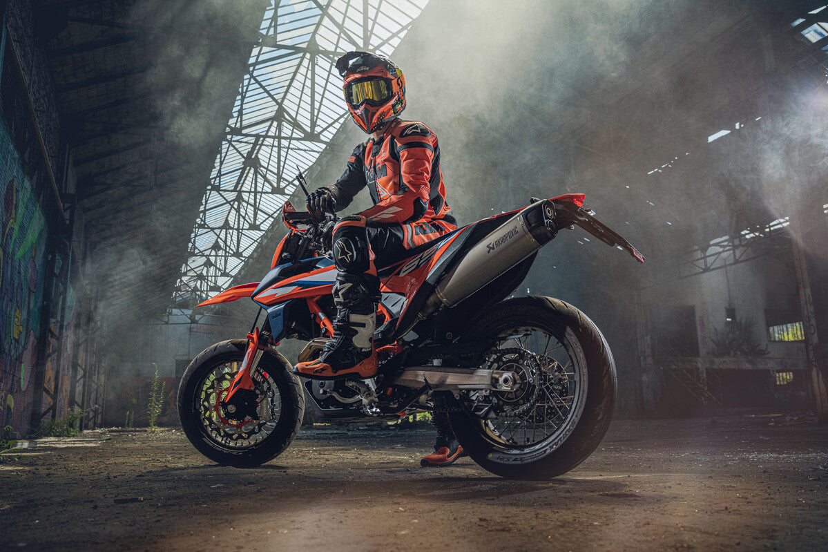 But it's not just about raw power – the 690 SMC R comes equipped with a sophisticated electronics package that enhances performance and safety. With fully-adjustable WP APEX suspension, you can fine-tune your ride to suit your riding style and road conditions, ensuring optimal control and confidence in every corner.