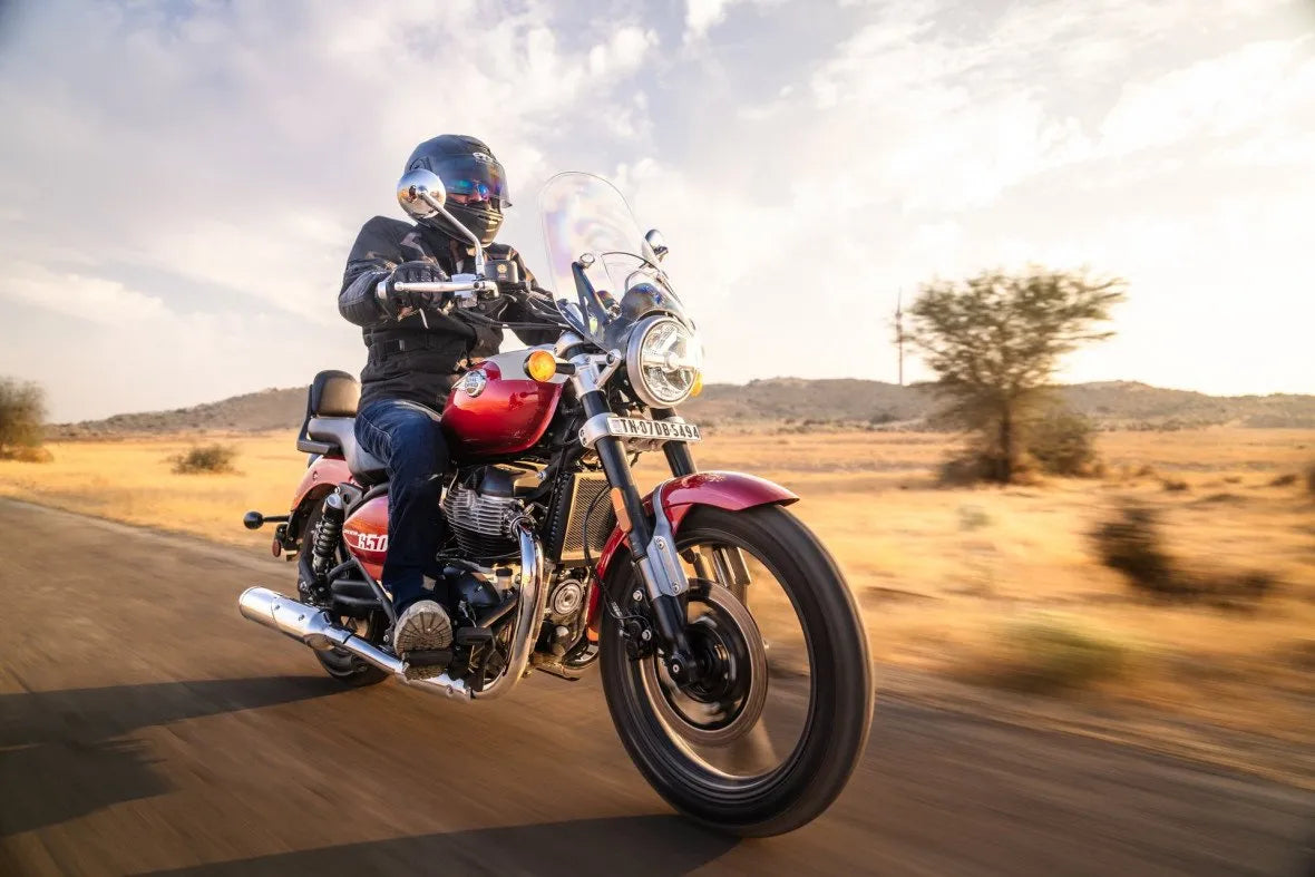 Introducing the Royal Enfield Super Meteor 650, a timeless cruiser that combines classic styling with modern performance for an unforgettable riding experience. With its powerful 650cc parallel-twin engine and comfortable ergonomics, the Super Meteor 650 is the perfect choice for riders of all skill levels, including those just starting their motorcycle journey.