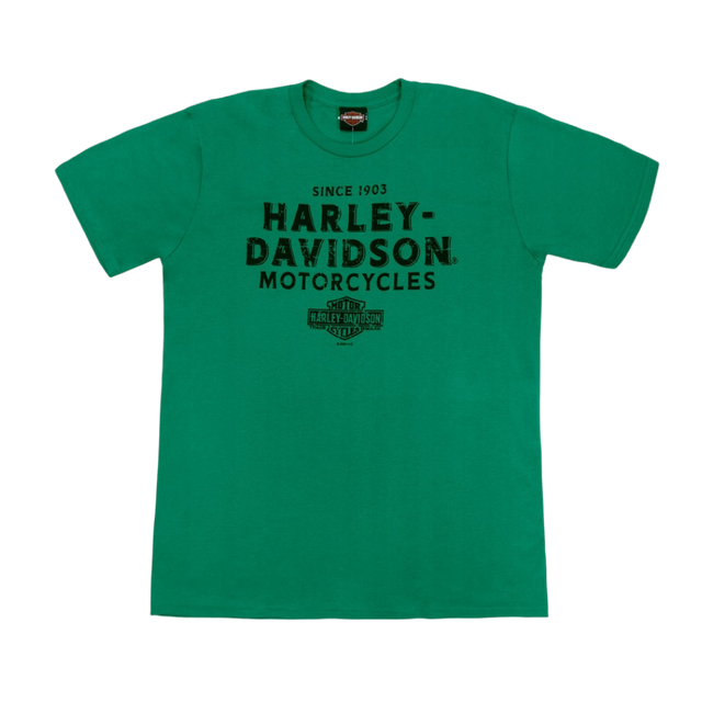 Harley-Davidson Men's More Oil T-Shirt in Kelly Green combines classic motorcycle culture with everyday wearability. Crafted from quality cotton, this tee features the iconic "More Oil" graphic that resonates with riders and enthusiasts alike. The rich kelly green hue offers versatility for casual styling while maintaining that authentic H-D aesthetic. Perfect for showcasing your passion for legendary American motorcycles, whether you're at the garage, on the road, or simply out and about.