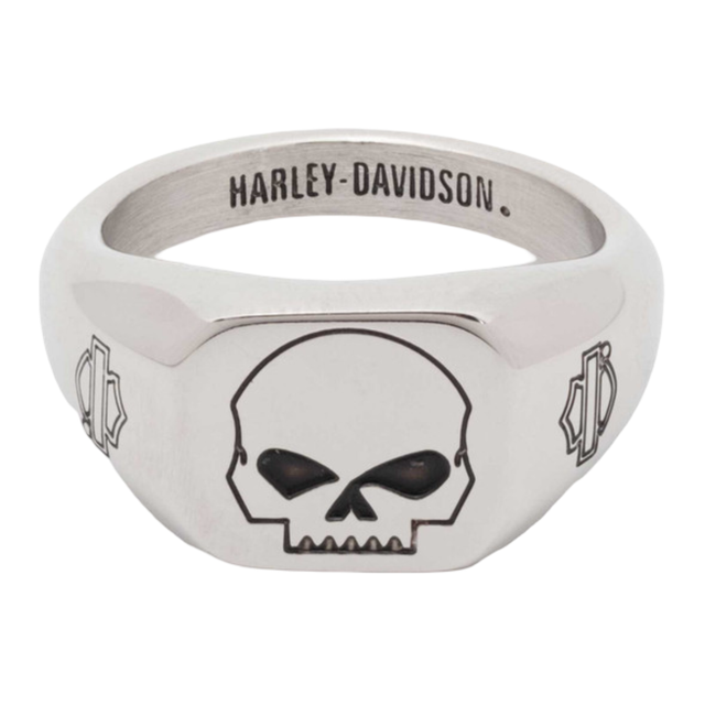 Harley-Davidson Men's Willie G Skull Beveled Edge Ring, Stainless Steel