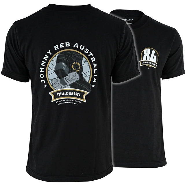 Johnny Reb Men's 'Classic Boot' T-Shirt delivers authentic motorcycle culture in a timeless black cotton design. This premium tee showcases the iconic Classic Short Boot graphic, perfect for riders and enthusiasts who appreciate heritage and style.